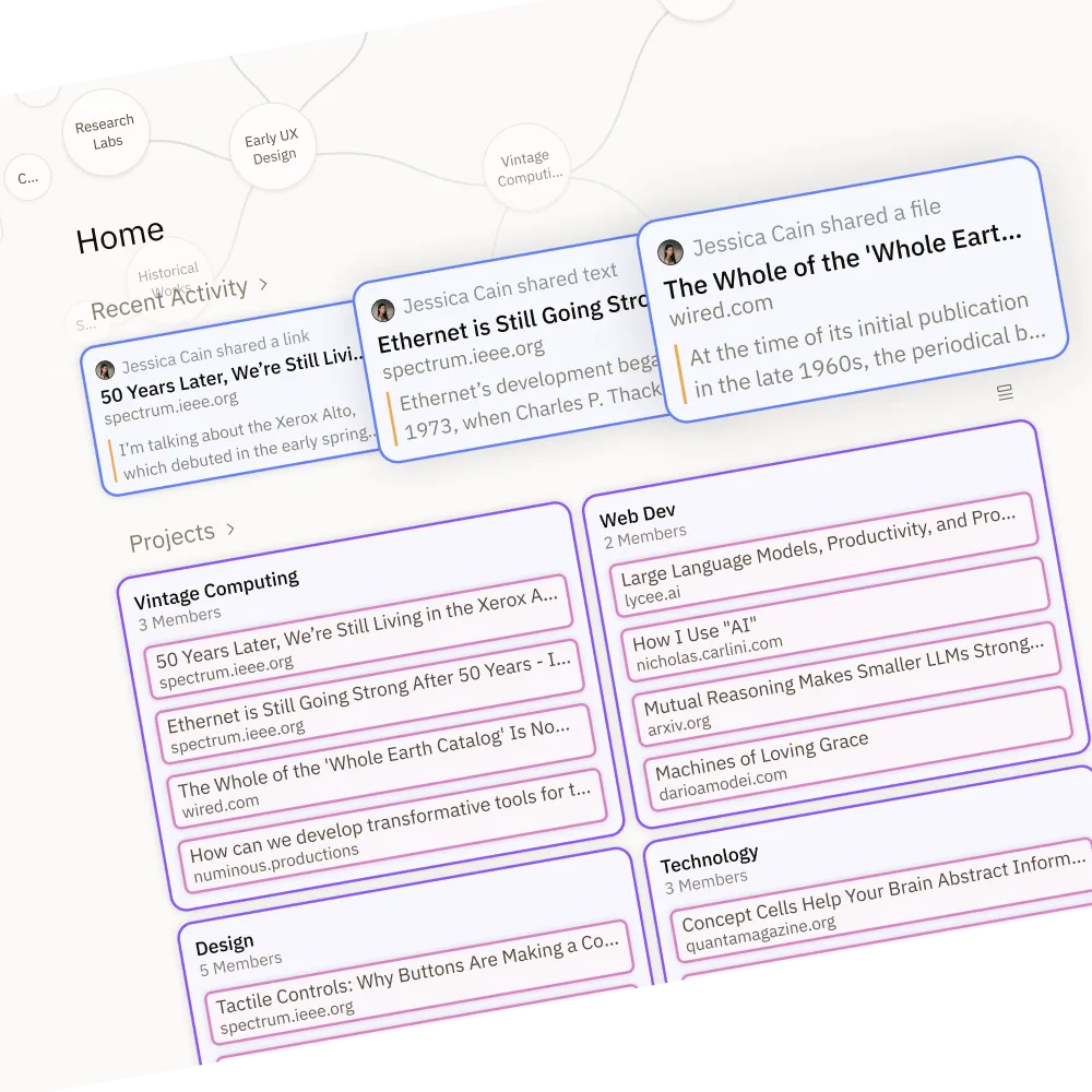 Create sets of content in the plugin or web app and group them into projects and screens.
